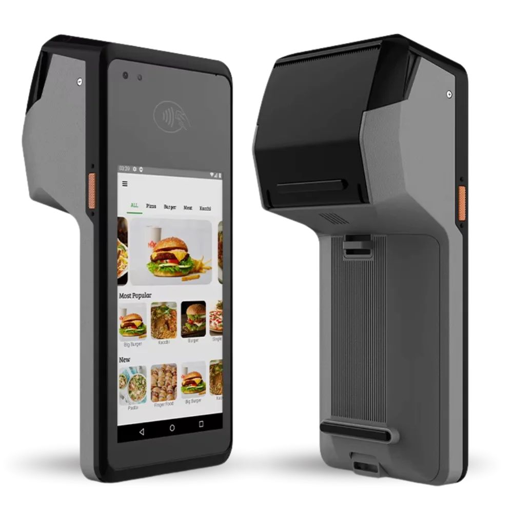 Φορητό τερματικό POS Android, με θερμικό εκτυπωτή 58 ιντσών και σαρωτή γραμμωτού κώδικα για διαχείριση αποθεμάτων.