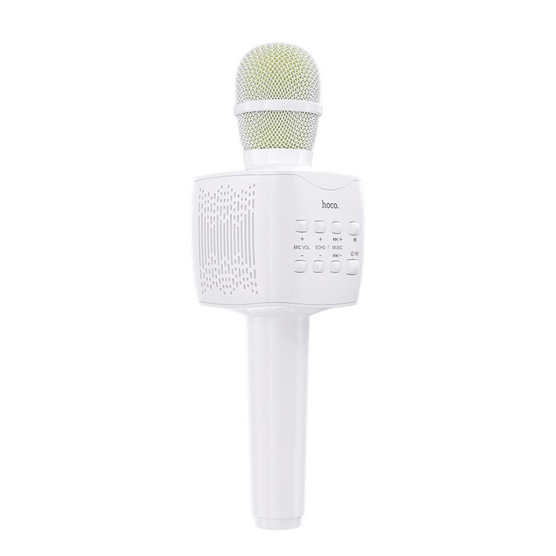Ασύρματο Μικρόφωνο και Ηχείο μαζί! Διαθέτει Πλήκτρα Ελέγχου για να μπορείτε να μιλάτε αλλά και να ακούτε μουσική ή ομιλία παράλληλα! Διαθέτει Υποδοχή Micro SD Κάρτας. Εντυπωσιάστε και εκφραστείτε ελεύθερα με αυτό το ασύρματο μικρόφωνο τεχνολογίας Bluetooth που μπορεί να συνδεθεί με το τηλέφωνο σας ή άλλη συσκευή αναπαραγωγής ήχου με τεχνολογία Bluetooth ενώ παράλληλα μπορείτε να ακούτε την αγαπημένη σας μουσική όσο τραγουδάτε karaoke. Στο μικρόφωνο υπάρχουν πλήκτρα ελέγχου και αναπαραγωγής ενώ το μικρόφωνο έχει διάμετρο 57mm και μέγεθος: 79X79X270mm ενώ το βάρος του είναι 412g. Λειτουργεί έως 6 ώρες.