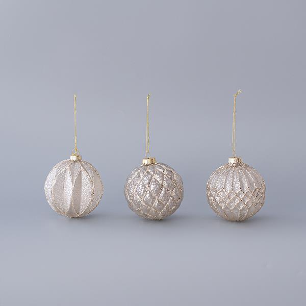ΓΥΑΛΙΝΗ ΜΠΑΛΑ, ΑΝΤΙΚΕ, ΜΕ ΣΑΜΠΑΝΙ GLITTER, 3 ΣΧΕΔΙΑ, ΣΕΤ 4ΤΜΧ, 8cm