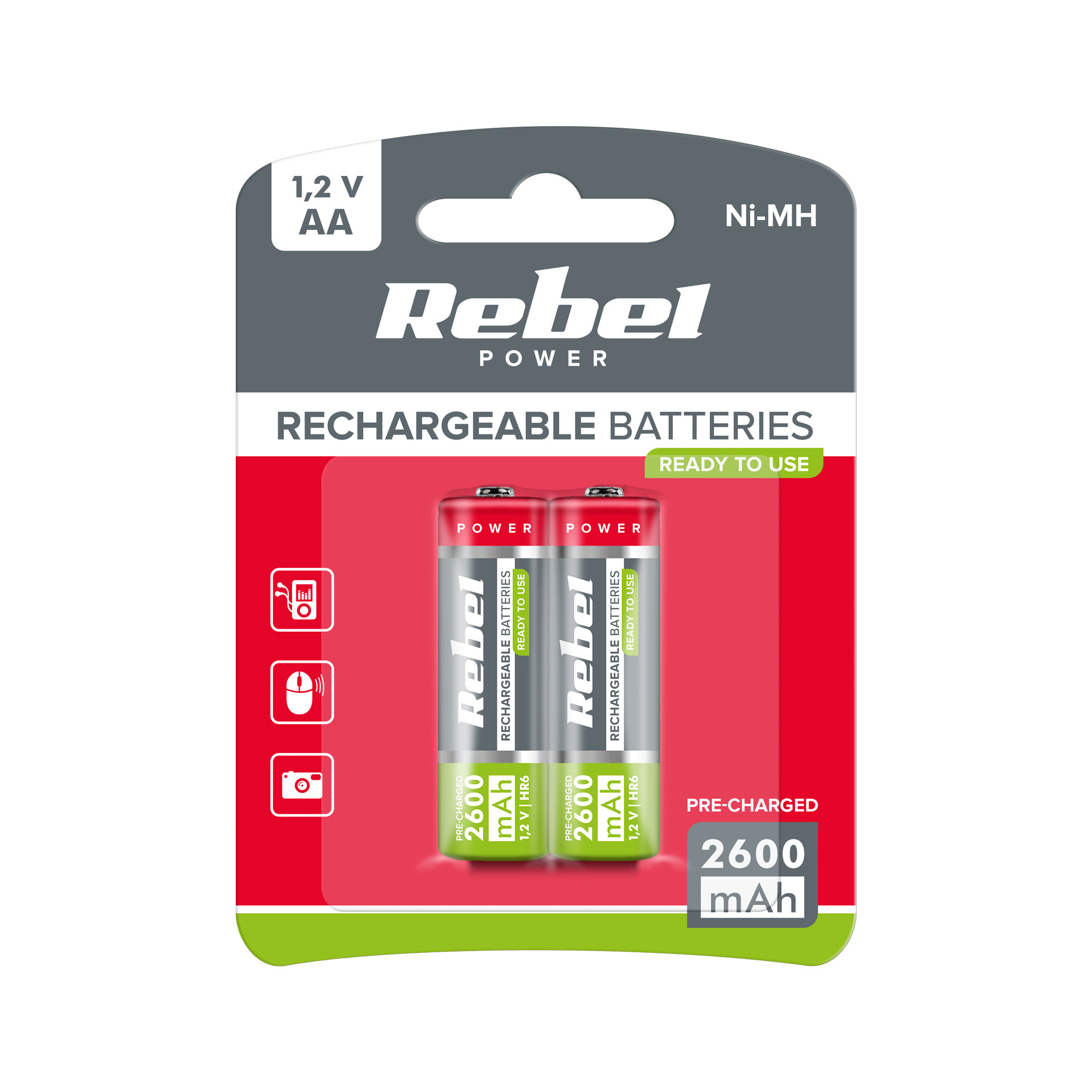 Επαναφορτιζόμενες μπαταρίες AA HR6 1.2V 2600mAh REBEL (2 τμχ)