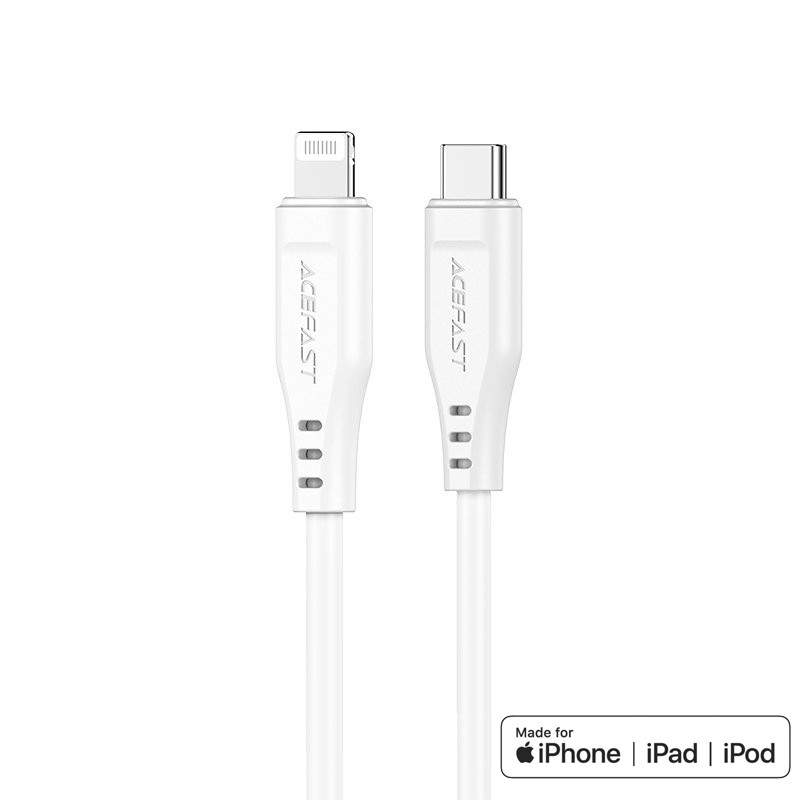 Καλώδιο σύνδεσης Acefast C3-01 USB-C σε Lightning Braided 3A με MFI Πιστοποίηση της Apple 1.2m Λευκό. Μέγιστη υποστήριξη γρήγορης PD φόρτισης 30W, συμβατή για γρήγορη φόρτιση iPhone 12 series PD 20W. Αντοχής για έως και 25000 χρησείς.