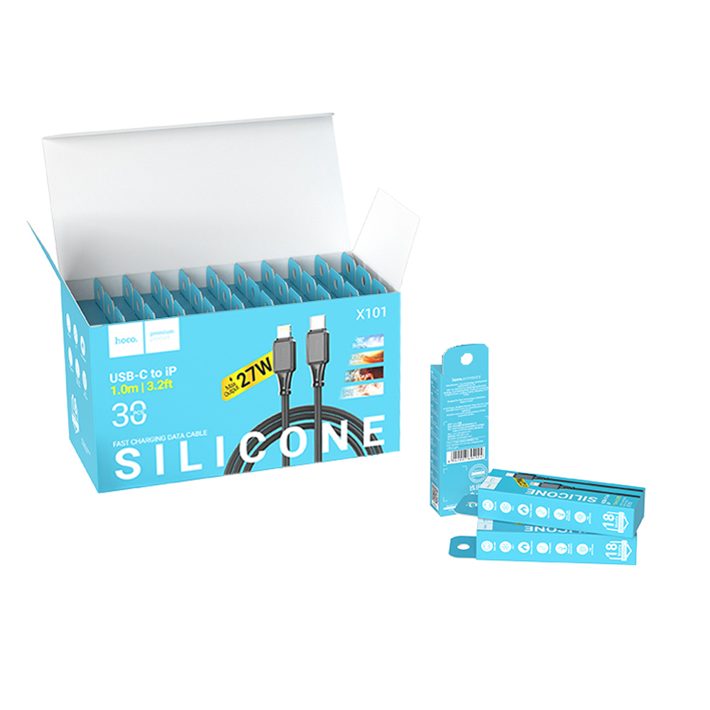 Καλώδιο Σύνδεσης Hoco X101 Silicon Assistant USB-C σε Lightning Fast Charging 27W Μαύρο 1m Σετ 30 τμχ
