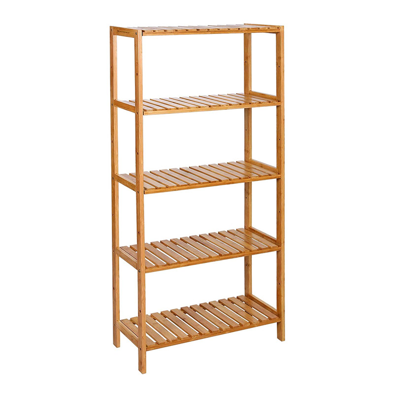Η ραφιέρα μπάνιου, είναι κατασκευασμένη από 100% υψηλής ποιότητας μπαμπού με λεία επιφάνεια και στρογγυλεμένες γωνίες για μέγιστη ασφάλεια. Διαθέτει 5 αποθηκευτικά και ρυθμιζόμενα σε ύψος ράφια και μπορείτε να τη χρησιμοποιήσετε στο μπάνιο για την αποθήκευση των προσωπικών σας αντικειμένων, ως παπουτσοθήκη ή ακόμα και στο σαλόνι σας.