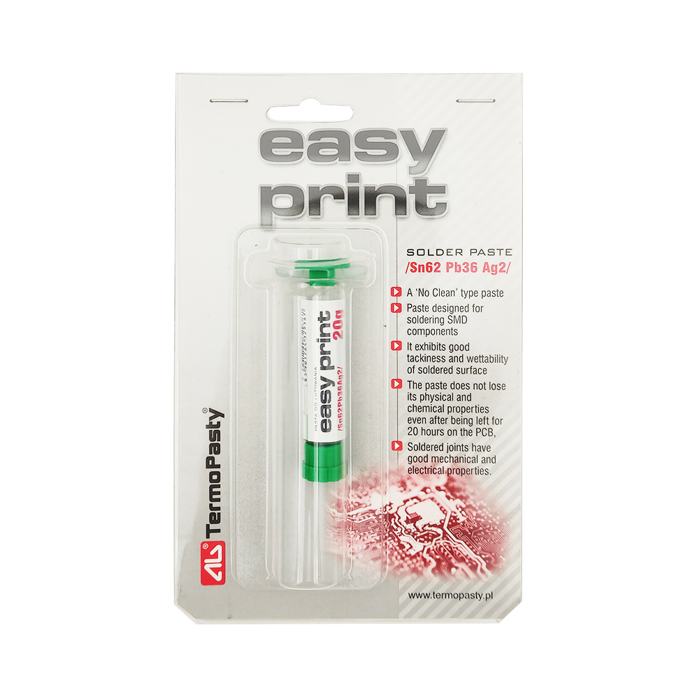 Μια πάστα τύπου “No Clean” είναι σχεδιασμένη για συγκόλληση εξαρτημάτων SMD σε διαδικασίες παραγωγής που δεν περιλαμβάνουν φάση πλύσης. Εκτός από τις σκόνες μετάλλων, η σύνθεση του προϊόντος περιλαμβάνει ρητίνη που βασίζεται σε ρητίνη και διαλύτη, ενεργοποιητές που απομακρύνουν οξείδια και θιξοτροπικές προσθήκες, που ευθύνονται για το ιξώδες και την πλαστικότητα. Η πάστα δεν χάνει τις φυσικές και χημικές ιδιότητές της ακόμη και μετά από 20 ώρες παραμονής στο PCB. Αυτο εξαρτάται από τις συνθήκες στο δωμάτιο: υγρασία και θερμοκρασία.