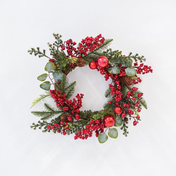 ΣΤΕΦΑΝΙ, ΜΕ ΚΟΚΚΙΝΑ BERRY ΚΑΙ ΚΟΚΚΙΝΑ ΔΙΑΚΟΣΜΗΤΙΚΑ, 50cm