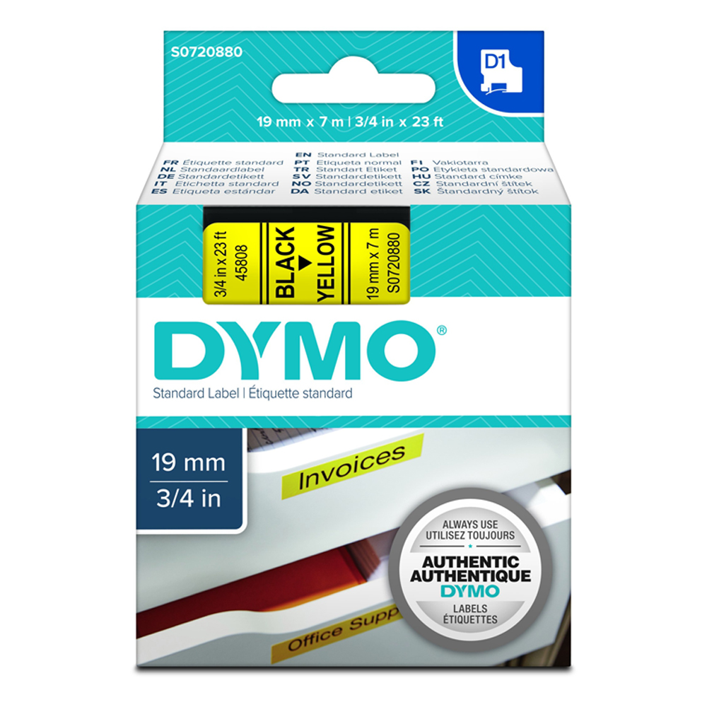 Ταινία Ετικετογράφου DYMO Standard 45808 19 mm x 7 m (Μαύρα Γράμματα σε Κίτρινο Φόντο) (S0720880) (DYMO45808)