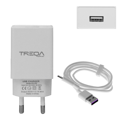 Ταχυφορτιστής USB με βύσμα type C CS-232 5V 3.1A Με αποσπώμενο καλώδιο. Ιδανικό για φόρτιση ή τροφοδοσία ρεύματος. Για όλες τις φορητές συσκευές που χρησιμοποιούν type C τροφοδοσία. Είσοδος 100 – 220Volt. Έξοδος 5Volt δύναμη φόρτισης 3,1 Amper Χρώμα Λευκό