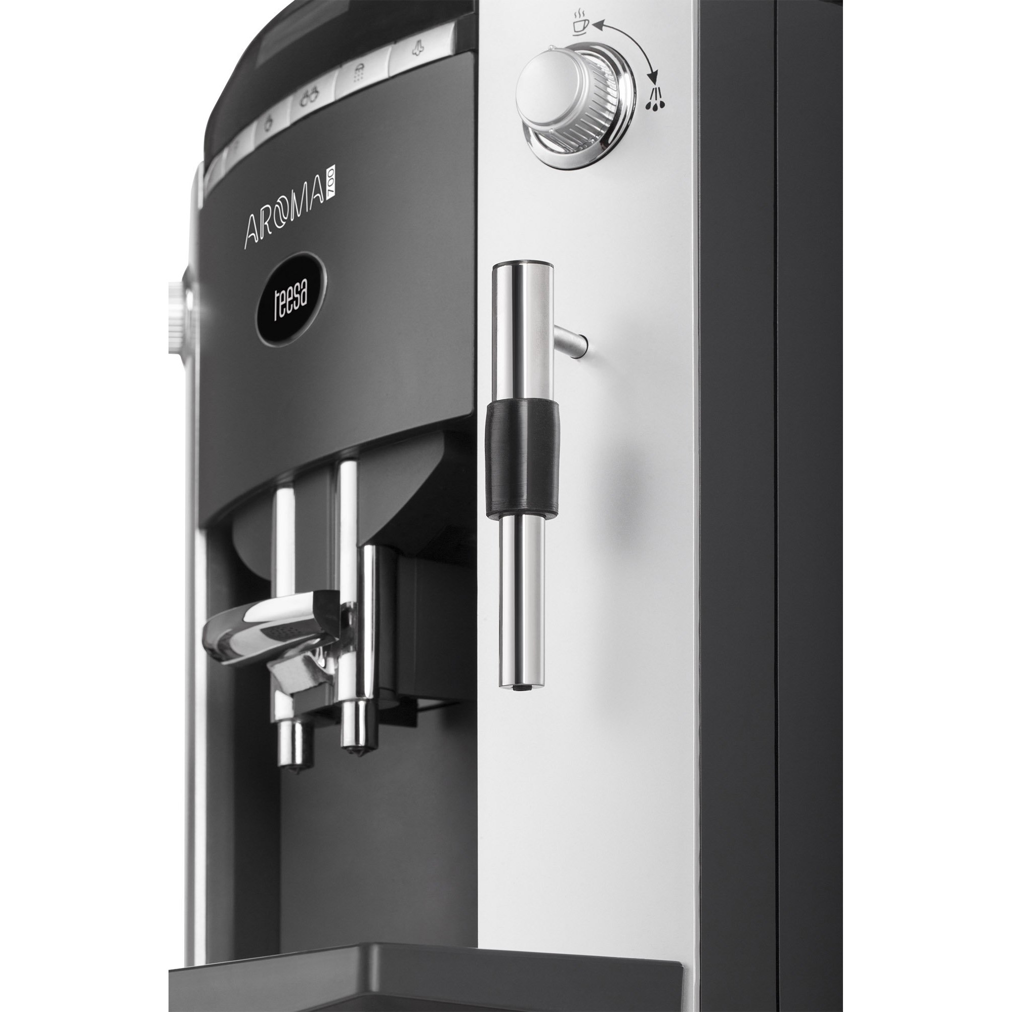 Η μηχανή καφέ Teesa Aroma 700 είναι προσαρμοσμένη στις ανάγκες σας. Με το ενσωματωμένο μύλο δεν χρειάζεται να σπαταλάτε πολύτιμο χρόνο άλεσης καφέ. Εκτός από το δοχείο κόκκων, το μηχάνημα είναι εξοπλισμένο με ξεχωριστή χοάνη για αλεσμένο καφέ. Μπορείτε να απολαύσετε τη γεύση του αγαπημένου σας καφέ με βασιλικό στυλ