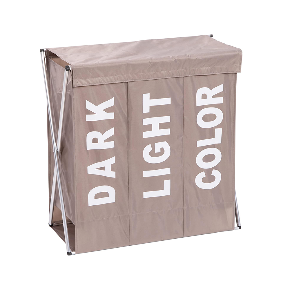 Bakaji Καλάθι Απλύτων 3 Διαμερίσματα Πτυσσόμενο Μεταλλικό και Υφασμάτινο Ταούπ 64 x 38 x 62 εκ. (2838449) (BAK2838449)