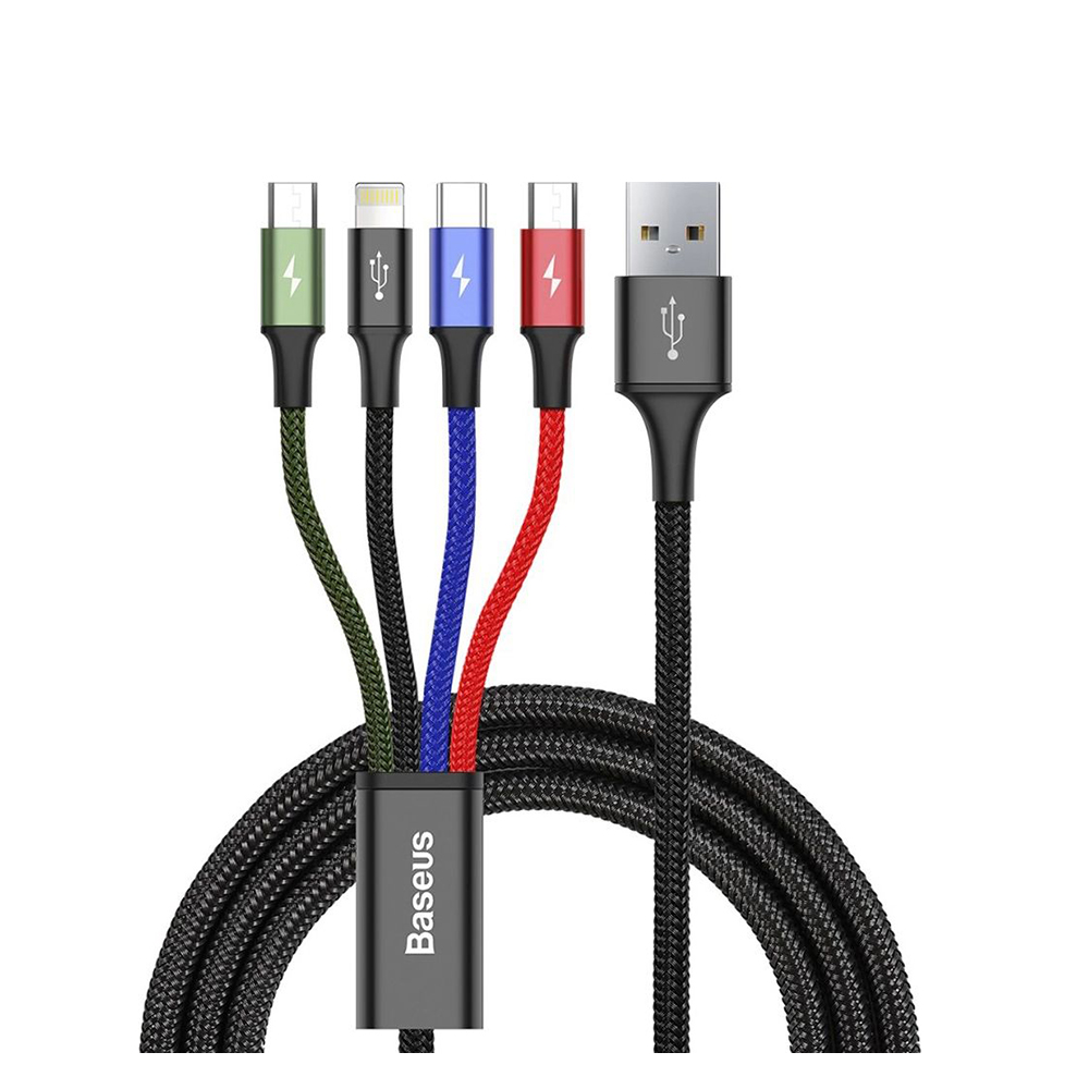Baseus Braided USB to Lightning / 2x Type-C / micro USB Cable Πολύχρωμο 1.2m (CA1T4-B01) (BASCA1T4B01)