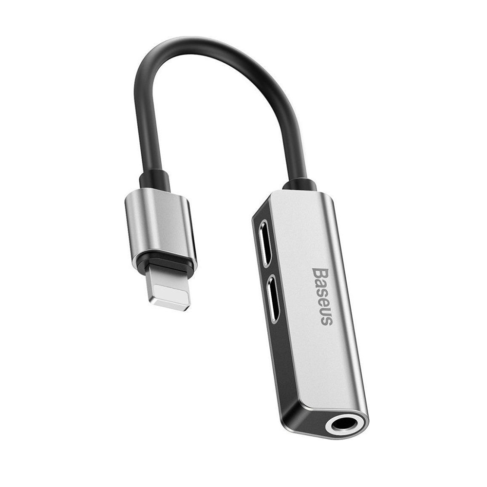 Baseus Converter L52 3-in-1 Lightning Male to Dual Lightning + 3.5mm Female Silver/Black (CALL52-S1) (BASCALL52-S1)