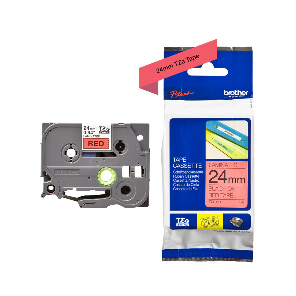 Brother P-Touch Laminated Black on Red 8m x 24mm (TZE451) (BROTZE451)