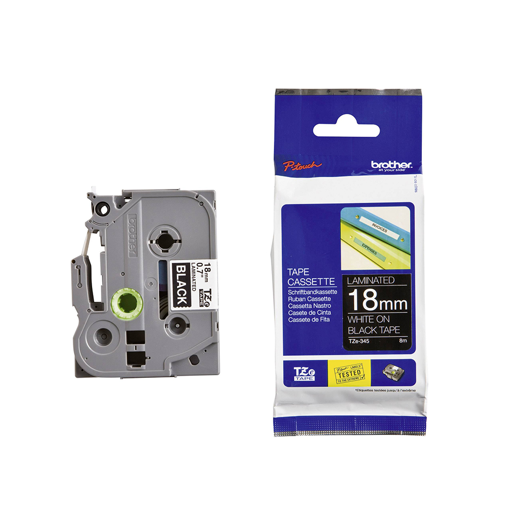 Brother P-Touch Laminated White on Black 8m x 18mm (TZE345) (BROTZE345)