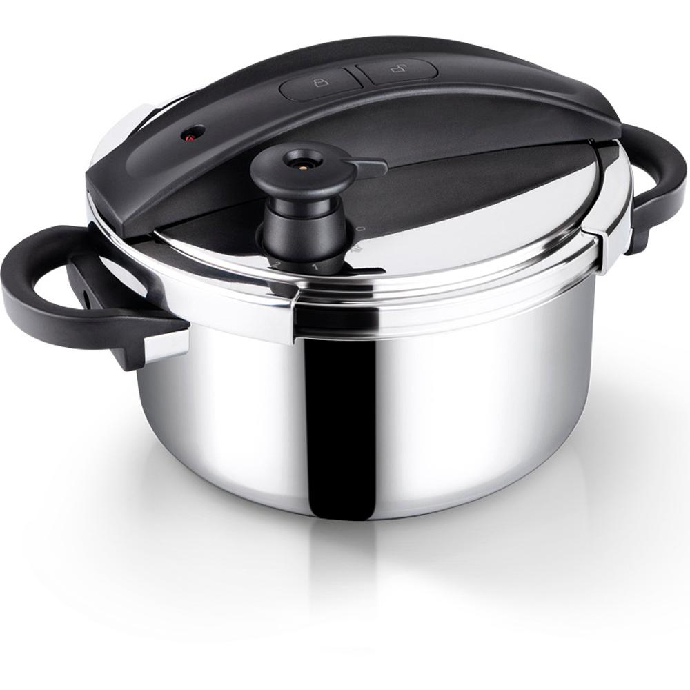 Η χύτρα ταχύτητας είναι κατασκευασμένη από πρώτης τάξεως ανοξείδωτο ατσάλι 18/10 και πολύ ανθεκτικό πλαστικό. Το εύκολο στη χρήση καπάκι ανοίγει χρησιμοποιώντας μόνο το ένα χέρι. Επιπλέον, με τον έλεγχο πίεσης μπορείτε να προετοιμάσετε με λεπτότητα νόστιμα γεύματα πολύ γρήγορα. Η χύτρα ταχύτητας είναι εξοπλισμένη με μανόμετρο, βαλβίδα ασφαλείας, πώμα ασφαλείας υπερπίεσης και λαβές για εύκολο χειρισμό. Διαθέτει ενισχυμένη βάση, έχει σχεδιαστεί για χρήση σε όλους τους τύπους εστιών, συμπεριλαμβανομένων των επαγωγικών εστιών. Διαστάσεις: 34 x 23,5 x 17,5 cm. Όγκος: 4L.