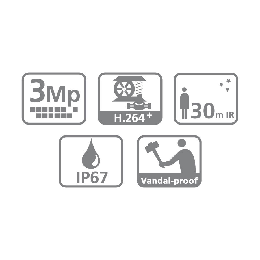 · DWDR, Day/Night(ICR), 3DNR, AWB, AGC, BLC