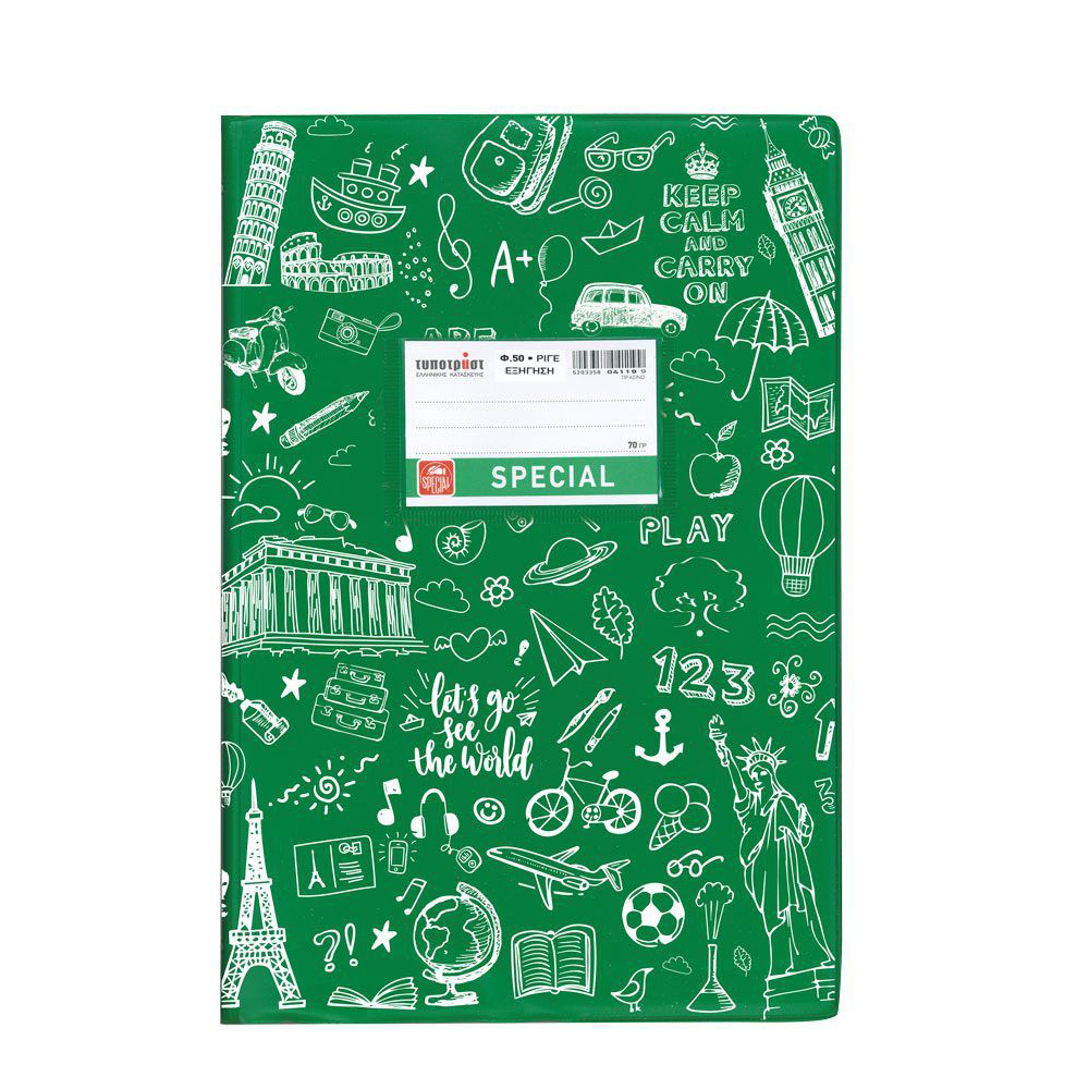 Doodle εξήγηση εύκαμπτη με περαστή θήκη. Special Τετράδιο 50 φύλλων, διάστασης B5 (17×25). Το εξώφυλλο είναι χρωματιστό με σχέδια για να ξεχωρίζει το κάθε μάθημα εύκολα. Τα φύλλα είναι από εξαιρετικής ποιότητας χαρτί 70γρ. και η γραμμογράφηση είναι ριγέ με σωστές αποστάσεις. Έχει προεκτυπωμένη ετικέτα 2 όψεων σε ματ χαρτί η οποία βγαίνει εύκολα χάρη στην εγκοπή και στρογγυλεμένες γωνίες. Διατίθεται σε 9 χρώματα (σκούρο μπλε, κόκκινο, πράσινο, μωβ, κίτρινο, πορτοκαλί, λαχανί, φούξια, γαλάζιο), σε πακέτο των 6 τεμαχίων.