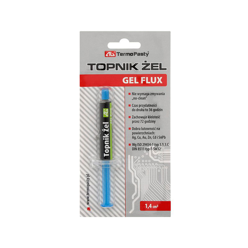 Το flux gel είναι η συμπυκνωμένη ρητίνη τύπου κολοφωνίου κατηγορίας RMA, τύπου 1.1.2 / 3 A σύμφωνα με το πρότυπο ISO 9454-1, που προορίζεται για συναρμολόγηση και επισκευές SMT.