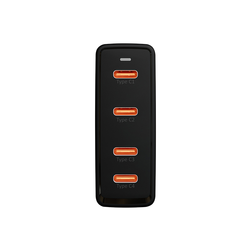 Τέσσερις συμμετρικές θύρες USB-C επιτρέπουν τη φόρτιση έως και τεσσάρων συσκευών ταυτόχρονα. Επιπλέον, η έξυπνη διαχείριση ισχύος εξασφαλίζει ότι κάθε μία από αυτές λαμβάνει τη βέλτιστη τάση και ρεύμα. Διαμορφώσεις όπως C1+C2 (65W+30W) ή C2+C3+C4 (5V/3A) επιτρέπουν την ευέλικτη χρήση του φορτιστή – από φορητούς υπολογιστές έως smartwatches.