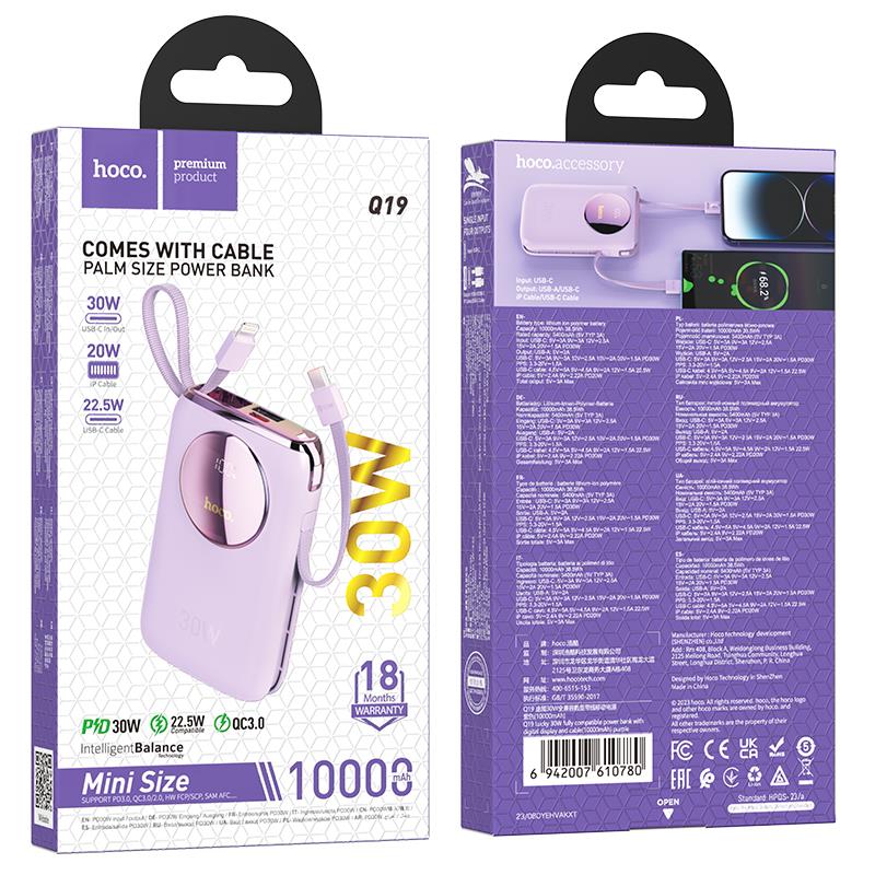 HOCO Q19 LUCKY FULLY COMPATIBLE POWER BANK, 10.000mAh, 30W ΜΕ ΟΘΟΝΗ, ΜΩΒ