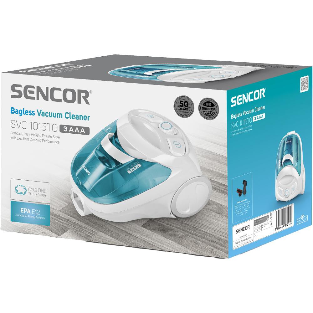 Αναζητάτε έναν ισχυρό βοηθό καθαρισμού που απορροφά με προσοχή και ακρίβεια διαφορετικούς τύπους δαπέδων; Αυτό ακριβώς κάνει η σύγχρονη ηλεκτρική σκούπα χωρίς σακούλα Sencor SVC 1015TQ 3AAA με σύστημα φιλτραρίσματος Cyclone και σταθερή ισχύ αναρρόφησης. Διαθέτει δυνατότητα ρύθμισης της ισχύος αναρρόφησης και προσφέρει πλήθος αξεσουάρ για μεγαλύτερη ευελιξία. Η λειτουργία της είναι αθόρυβη και ομαλή χάρη στους ειδικά σχεδιασμένους λαστιχένιους τροχούς. Έχει ισχύ 800 W, πλήρως πλενόμενο δοχείο σκόνης 1,5 λίτρων και ακτίνα δράσης 7,5 μέτρων.
