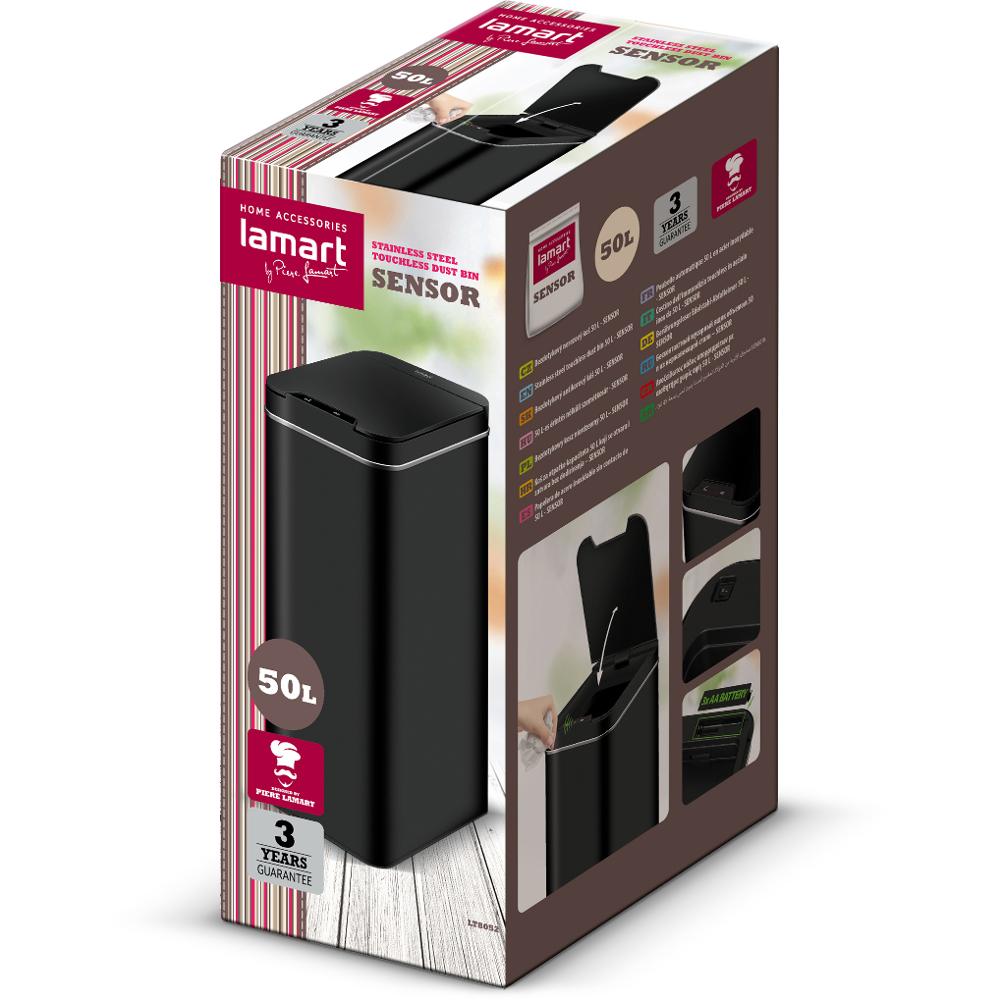 Κάδος Απορριμμάτων από Ανοξείδωτο Ατσάλι με Φωτοκύτταρο 50lt Lamart LT8052 Μαύρο