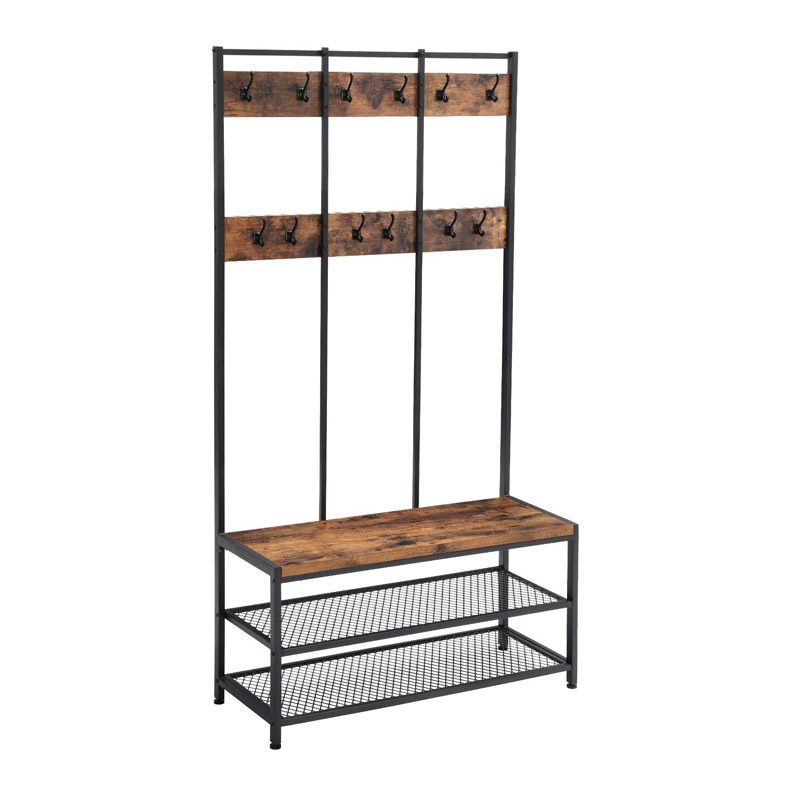 Το μεταλλικό έπιπλο, από την εταιρία VASAGLE, είναι ιδανικό για την είσοδο του σπιτιού σας και χάρη στην σχεδίασή του θα δώσει ένα Vintage στυλ στον χώρο σας. Διαθέτει 12 άγκιστρα για να κρεμάτε μπουφάν, παλτό, κασκόλ, ζώνες, τσάντες κλπ, 2 μεταλλικά ράφια για να βάζετε τα παπούτσια σας, καθώς και 1 ράφι από ξύλο τύπου Ε1 με μέγιστο βάρος τα 90 Kg. Είναι εξαιρετικά ευέλικτο και ταιριάζει τέλεια σε κάθε είσοδο, διάδρομο, καθιστικό ή σε οποιοδήποτε υπνοδωμάτιο. Χάρη στην μεταλλική του κατασκευή, είναι εξαιρετικά σταθερό με πλευρικούς σωλήνες και υποστηρίγματα. Είναι πολύ εύκολο στην συναρμολόγηση αφού δεν χρειάζονται εργαλεία.