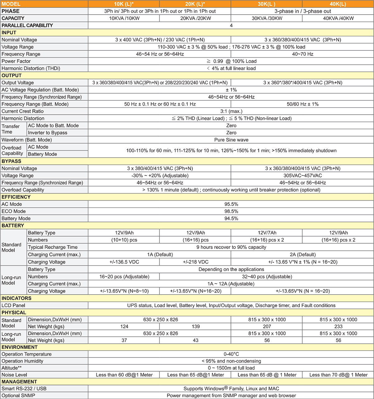 Online UPS 20 KVA 3P/3P Διαστάσεις 630×250×826 Χωρίς Μπαταρίες