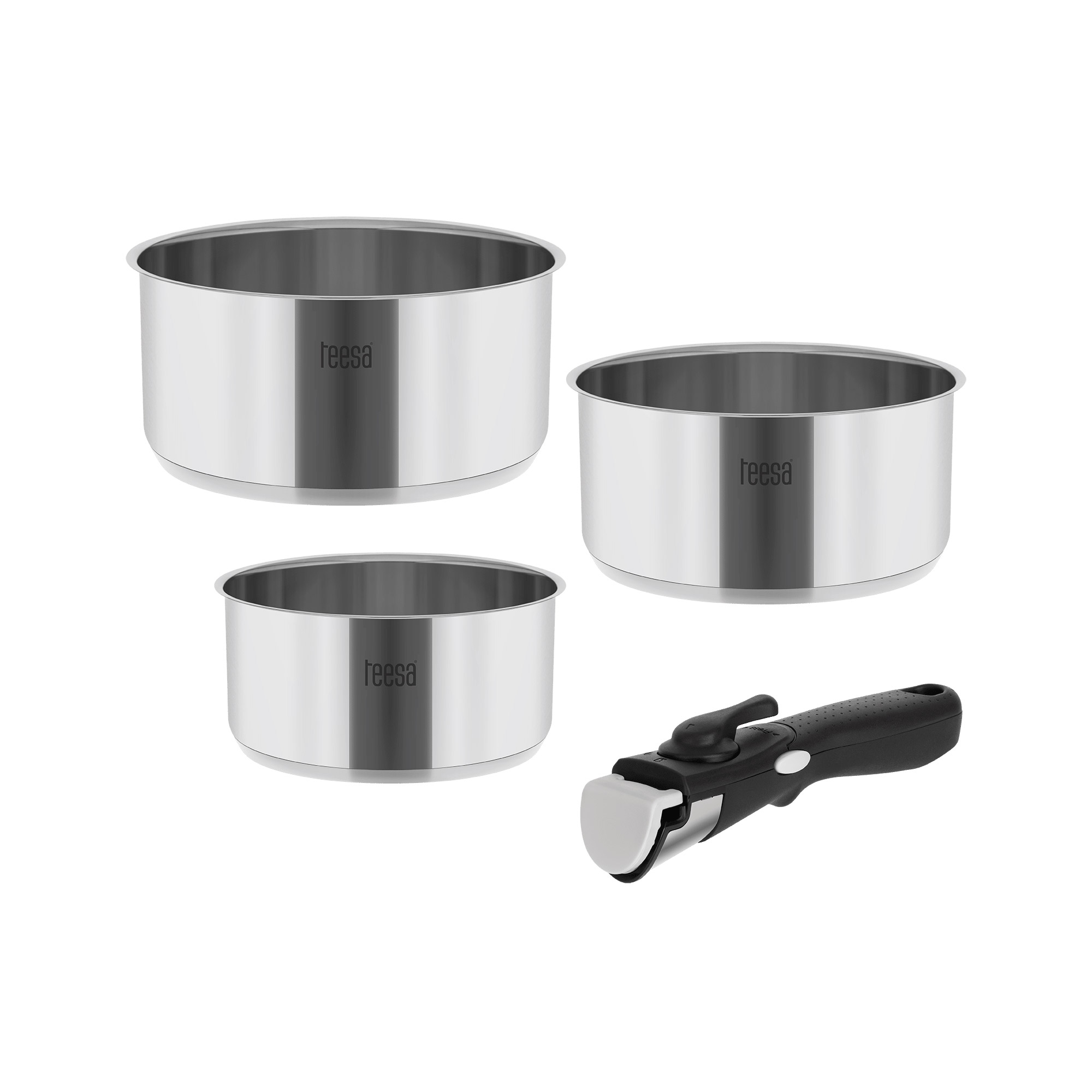 Σετ κατσαρόλες ανοξείδωτες με αποσπώμενη λαβή TEESA Cook Expert Single Hand (3 τμχ)