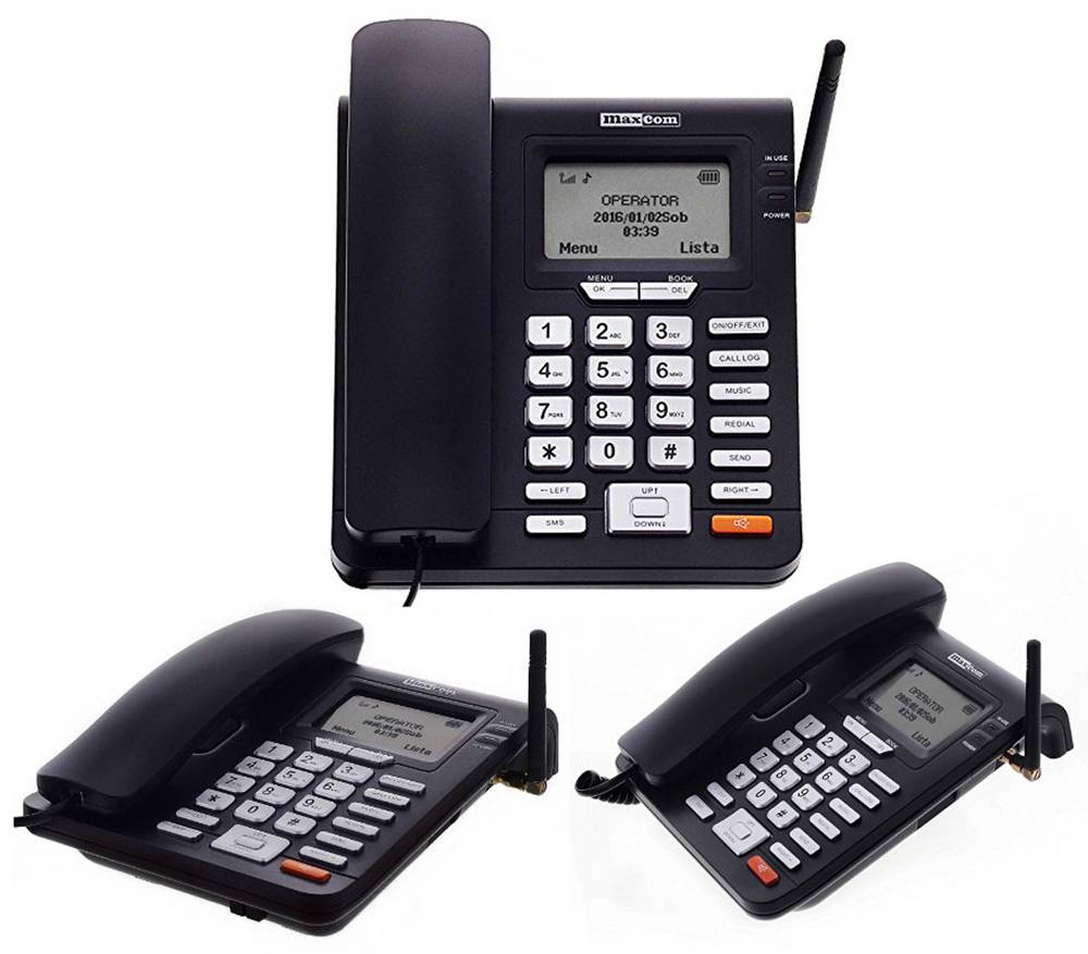 Σταθερό GSM Τηλέφωνο Maxcom Comfort MM28D Μαύρο με Λειτουργία Κινητού Τηλεφώνου και Ραδιόφωνο FM. Απλό σταθερό τηλέφωνο που μπορείτε να συνδεθείτε στο δίκτυο κινητής τηλεφωνίας . Τα μεγάλα πλήκτρα, και η φωτεινή και ευανάγνωστη οθόνη το καθιστούν εύχρηστο και χρήσιμο στο γραφείο ή στο σπίτι. Η συσκευή λειτουργεί μόνο με κάρτα SIM και υποστηρίζει αποστολή και λήψη SMS. Διαθέτει λειτουργία με ρεύμα αλλά και μπαταρία 600 mAh με αυτονομία 120 ώρες αναμονής και 2 ώρες ομιλίας.
