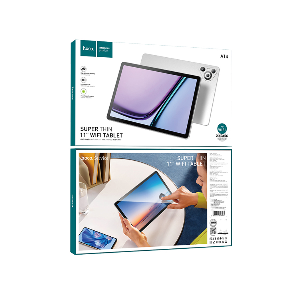 Το Hoco A14 είναι ένα κομψό και λεπτό tablet με μεγάλη οθόνη 11 ιντσών, ιδανικό για φιλική πλοήγηση, προβολή βίντεο και καθημερινές εφαρμογές. Λειτουργεί με το σύγχρονο Android 14 και προσφέρει αξιόπιστη απόδοση με 3GB RAM και 64GB αποθηκευτικού χώρου (με δυνατότητα επέκτασης μέσω MicroSD), καλύπτοντας τις ανάγκες σας για εφαρμογές, αρχεία και ψυχαγωγία. Η Wi‑Fi συνδεσιμότητα εξασφαλίζει γρήγορη πρόσβαση στο Internet, ενώ η μεγάλη μπαταρία 5000mAh προσφέρει αυτονομία όλη μέρα. Συνοδεύεται από προστατευτικό οθόνης (screen protector) και θήκη Book για ασφάλεια και πρακτική χρήση καθ’ όλη τη διάρκεια της μέρας.