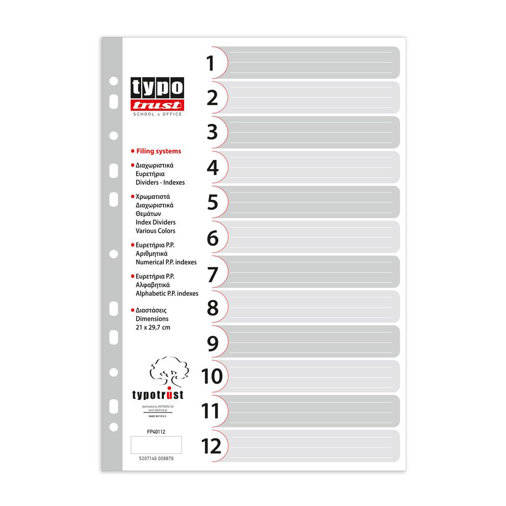 Typotrust Διαχωριστικά A4 Αριθμητικά Πλαστικά 1-12 (FP40112) (TYPFP40112)