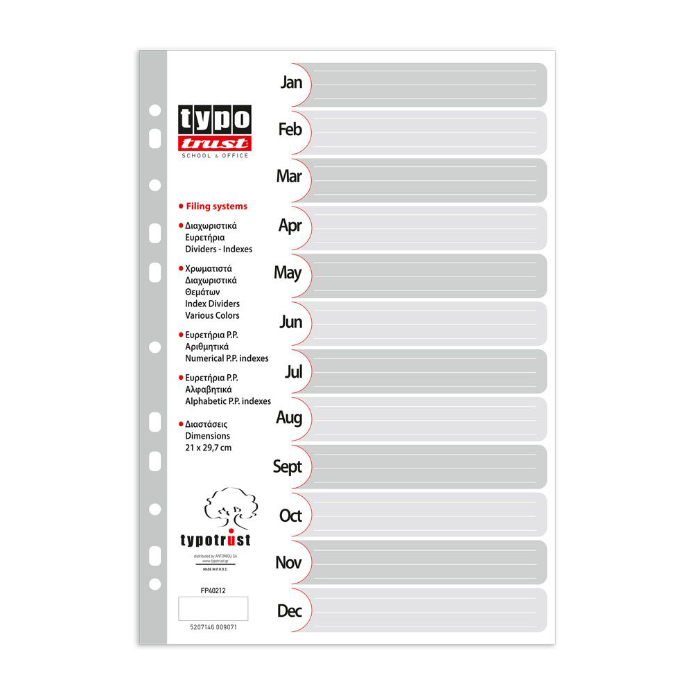 Typotrust Διαχωριστικά A4 12 Μήνες (Αγγλικά) Πλαστικά (FP40212) (TYPFP40212)