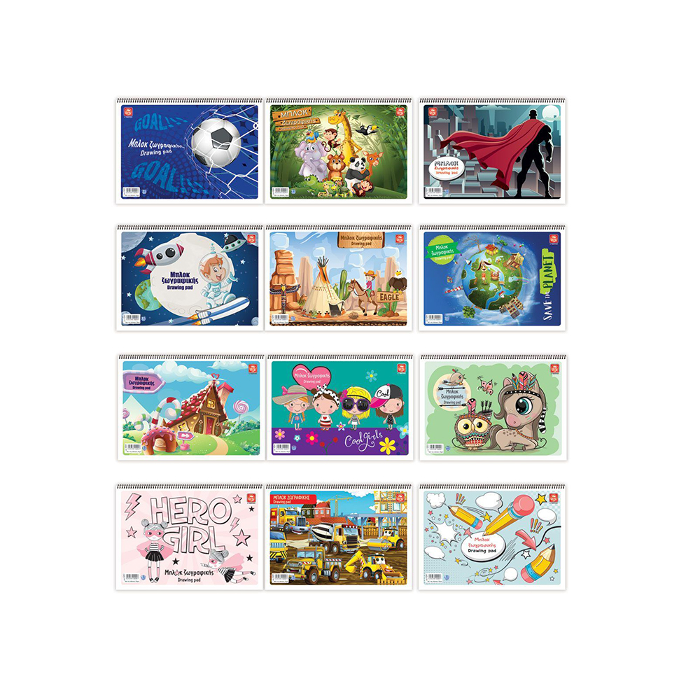 Το κάθε μπλοκ έχει 40 φύλλα και είναι από εξαιρετικής ποιότητας χαρτί 70γρ. κατάλληλο για τις ζωγραφιές των μικρών μας φίλων! Έχει μονό μεταλλικό σπιράλ. Είναι το ιδανικό μπλοκ για μολύβι, ξυλομπογιά, παστέλ και μαρκαδόρους!