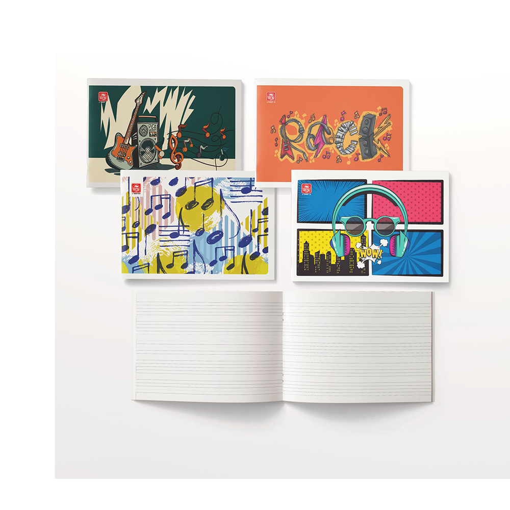 Τετράδιo μουσικής με σχέδια για τους μικρούς δημιουργούς! Εξώφυλλο χάρτινο πλαστικοποιημένο. Διάσταση 17×25 πλάγιo, καρφίτσα, 40 φύλλων, με 70gr χαρτί. Η γραμμογράφηση είναι 5 Πενταγράμμων. Η συσκευασία είναι ανάμεικτων σχεδίων σε πακέτο των 12τεμ.