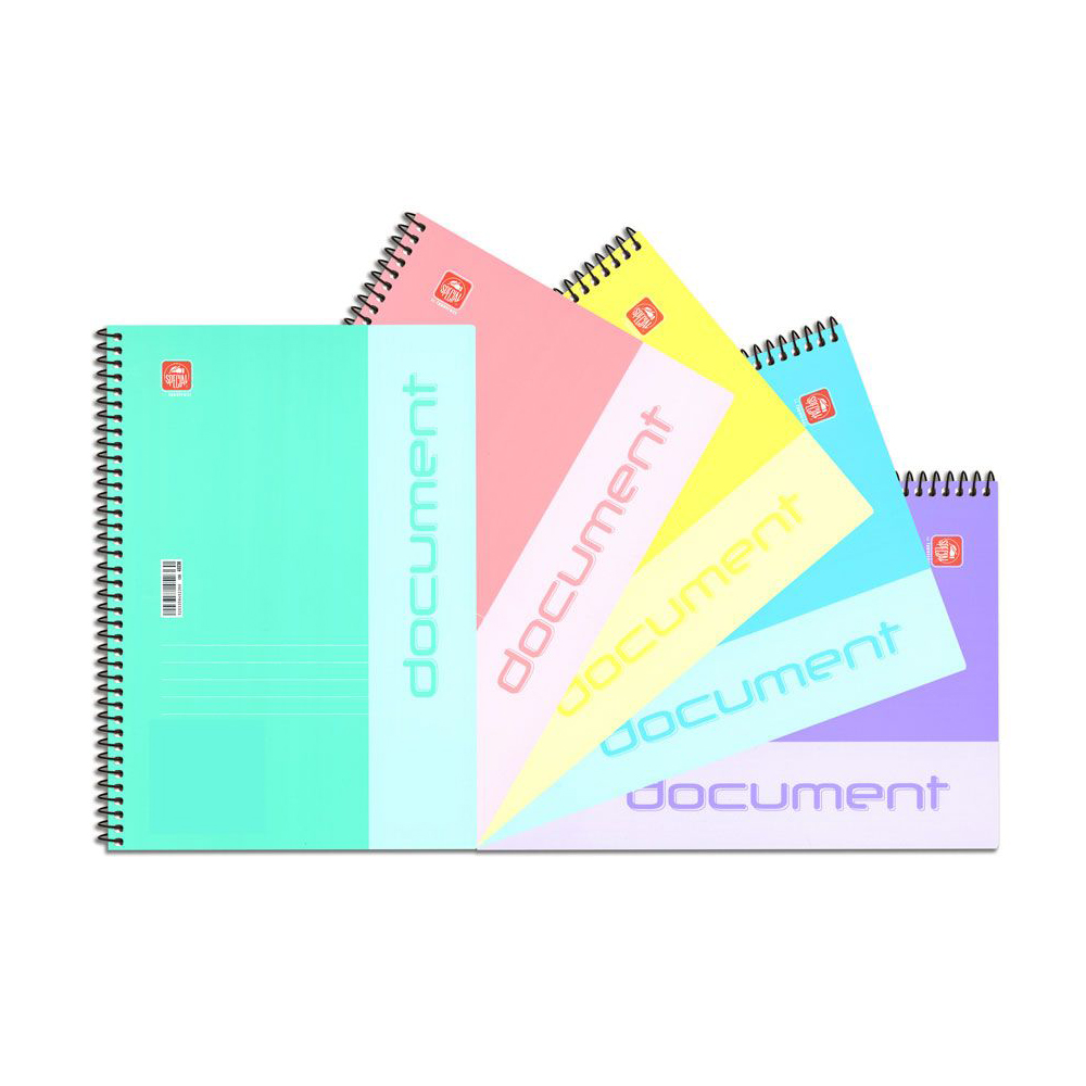Document τετράδιο σπιράλ 3 θεμάτων A4 (21×29,7). Με εξώφυλλο πλαστικοποιημένο 350 γρ. και με σκληρό οπισθόφυλλο για να μπορείς να γράφεις σταθερά. Τα φύλλα είναι από εξαιρετικής ποιότητας χαρτί 70γρ. και η γραμμογράφηση είναι ριγέ. Είναι 3 θεμάτων, με διαχωριστικό για μεγαλύτερη ευκολία. Διατίθεται σε 5 παστέλ χρώματα (ροζ, κίτρινο, μέντα, μωβ, γαλάζιο). Η συσκευασία είναι ανάμεικτων χρωμάτων σε πακέτο των 10τεμ.