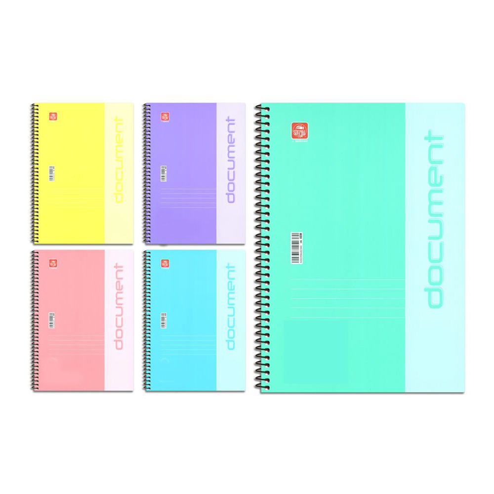 Document τετράδιο σπιράλ 2 θεμάτων B5 (17×25). Με εξώφυλλο πλαστικοποιημένο 350 γρ. και με σκληρό οπισθόφυλλο για να μπορείς να γράφεις σταθερά. Τα φύλλα είναι από εξαιρετικής ποιότητας χαρτί 70γρ. και η γραμμογράφηση είναι ριγέ. Είναι 2 θεμάτων, με διαχωριστικό για μεγαλύτερη ευκολία. Διατίθεται σε 5 παστέλ χρώματα (ροζ, κίτρινο, μέντα, μωβ, γαλάζιο). Η συσκευασία είναι ανάμεικτων χρωμάτων σε πακέτο των 10τεμ.