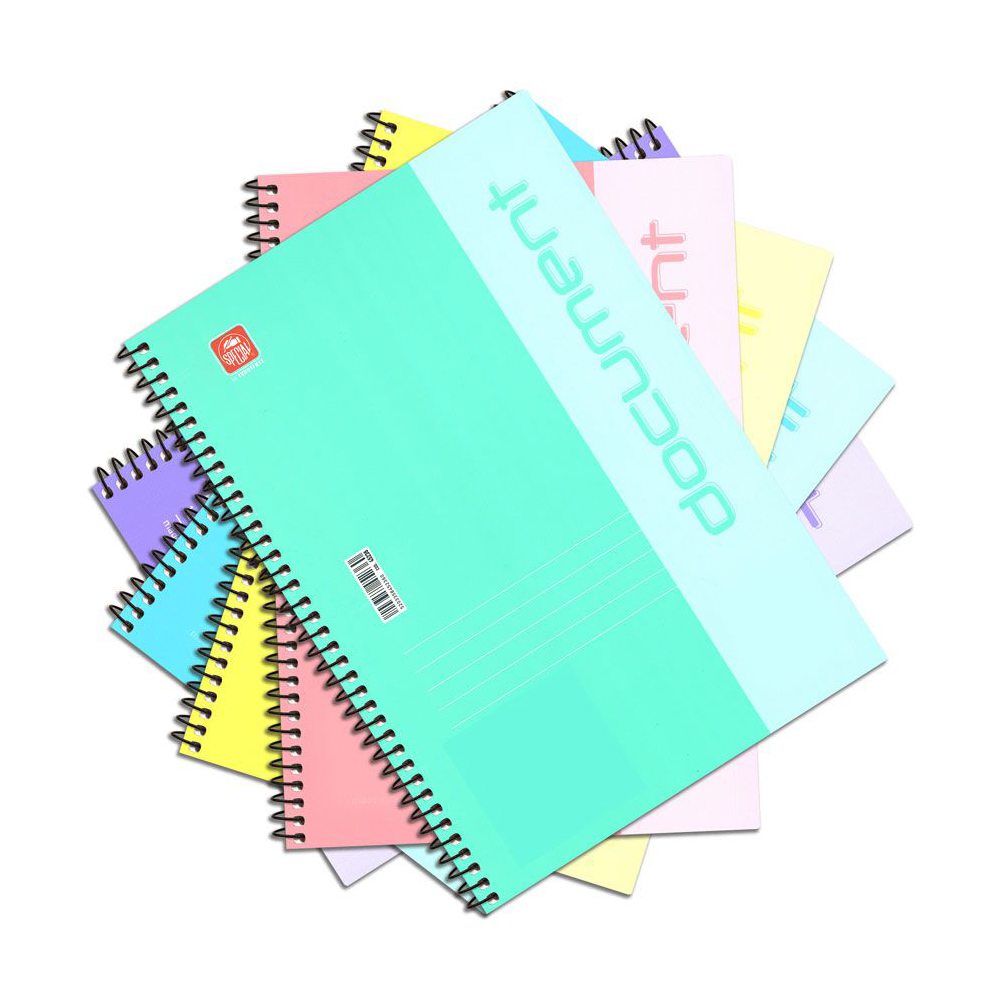 Document τετράδιο σπιράλ 3 θεμάτων B5 (17×25). Με εξώφυλλο πλαστικοποιημένο 350 γρ. και με σκληρό οπισθόφυλλο για να μπορείς να γράφεις σταθερά. Τα φύλλα είναι από εξαιρετικής ποιότητας χαρτί 70γρ. και η γραμμογράφηση είναι ριγέ. Είναι 3 θεμάτων, με διαχωριστικό για μεγαλύτερη ευκολία. Διατίθεται σε 5 παστέλ χρώματα (ροζ, κίτρινο, μέντα, μωβ, γαλάζιο). Η συσκευασία είναι ανάμεικτων χρωμάτων σε πακέτο των 10τεμ.