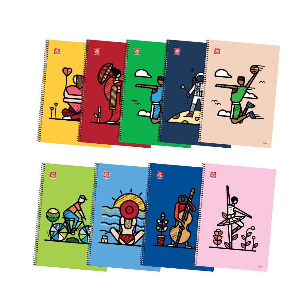 Τετράδιο σπιράλ 2 θεμάτων B5 (17×25). Με εξώφυλλο paperboard 350gr. και με σκληρό οπισθόφυλλο για να μπορείς να γράφεις σταθερά. Τα φύλλα είναι από εξαιρετικής ποιότητας χαρτί 70γρ. και η γραμμογράφηση είναι ριγέ. Είναι 2 θεμάτων, με διαχωριστικό για μεγαλύτερη ευκολία. Διατίθεται σε 9 σχέδια, σύμφωνα με τις απαιτήσεις και τις τάσεις της αγοράς. Η συσκευασία είναι ανάμεικτων σχεδίων (τυχαία επιλογή) σε πακέτο των 16τεμ.