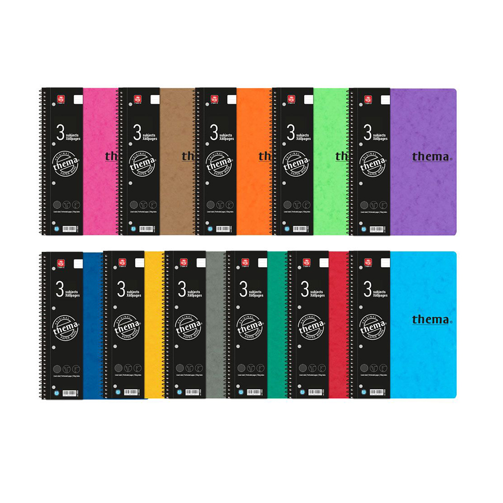 Τετράδιο σπιράλ 3 θεμάτων B5 (17×25). Με εξώφυλλο Pressboard 350 γρ. και με σκληρό οπισθόφυλλο για να μπορείς να γράφεις σταθερά. Τα φύλλα είναι από εξαιρετικής ποιότητας χαρτί 70γρ. και η γραμμογράφηση είναι ριγέ με σωστές αποστάσεις. Διαθέτει φύλλα με μικροπερφορέ για άμεση και εύκολη κοπή των φύλλων! Με περιθώριο και τρύπες για γρήγορη αρχειοθέτηση σε κλασέρ ή ντοσιέ. Είναι 3 θεμάτων, με διαχωριστικό για μεγαλύτερη ευκολία. Διατίθεται σε 11 χρώματα (κόκκινο, μπλε, κίτρινο, καφέ, πράσινο, γκρι, πορτοκαλί, ροζ, γαλάζιο, λαχανί, μωβ). Η συσκευασία είναι ανάμεικτων χρωμάτων (τυχαία επιλογή) σε πακέτο των 6 τεμαχίων.