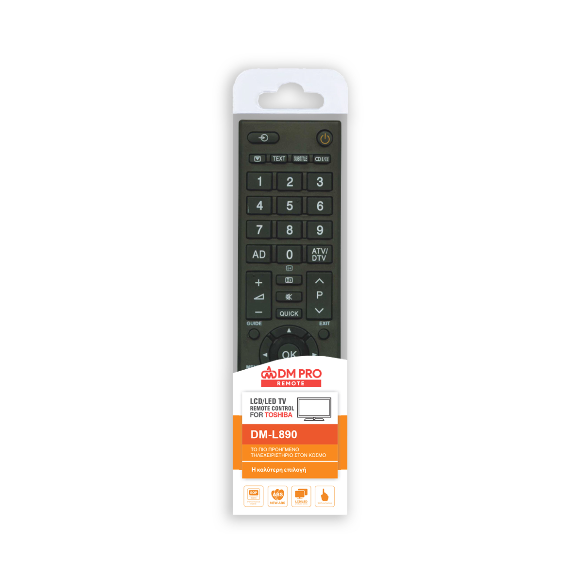 To DM-L890 είναι το πιο πρόσφατο προϊόν της εταιρείας μας, μπορεί να χρησιμοποιηθεί άμεσα χωρίς ρυθμίσεις, εύκολο στη χρήση, αντικαθιστά άμεσα όλα τα παρακάτω τηλεχειριστήρια Toshiba.