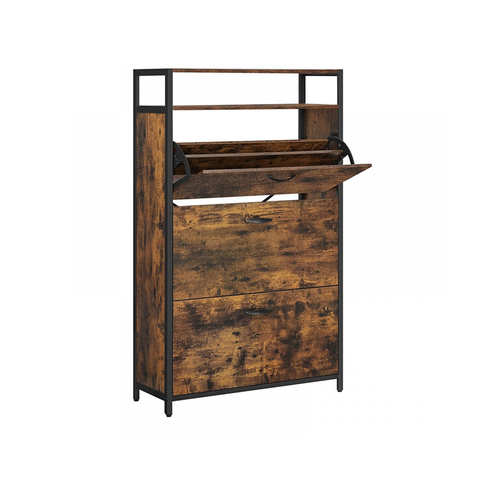 Η παπουτσοθήκη της εταιρείας Vasagle διαθέτει 3 ράφια για την οργάνωση, αποθήκευση και προστασία των παπουτσιών σας και είναι κατασκευασμένη από μέταλλο και μοριοσανίδα (νοβοπάν), ένα παράγωγο ξύλου από μικρά κομμάτια ξύλου και πριονίδι.
