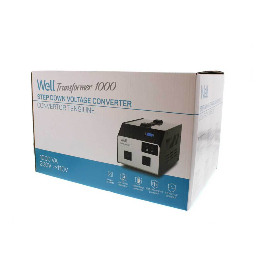 VOLTAGE CONVERTER-110V 1000VA 2 OUTPUTS Well Black PSUP-CONV-TRA1000-WL