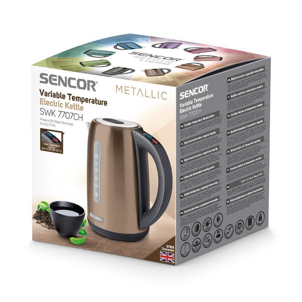 Βραστήρας Ανοξείδωτος με Επιλογή Θερμοκρασίας 1,7lt 2150W Sencor SWK 7707CH Χρυσαφί