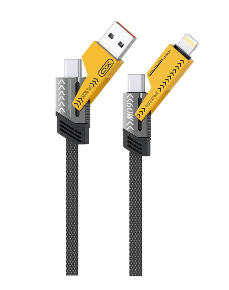 XO NB283 4-in-1 BRAIDED FLAT, DATA CABLE, ΓΚΡΙ